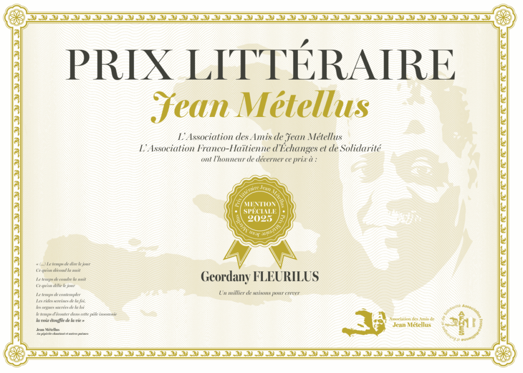 L’idée de fonder le prix de poésie Jean Métellus vient de Jonas Jolivert, membre